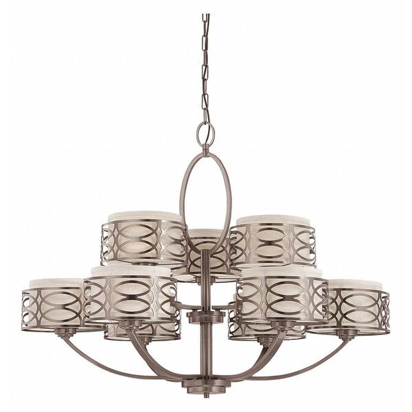 Harlow 9 Light Chandelier Khaki Fabric Shades Hazel Bronze (Discontinued)