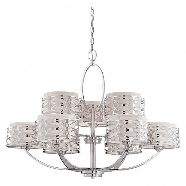 Harlow 9 Light Chandelier Slate Gray Fabric Shades Polished (Discontinued)