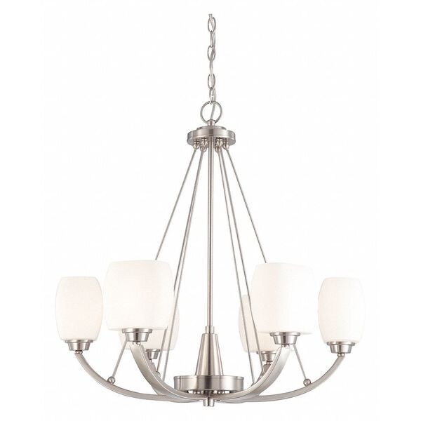 Helium 6 Light Chandelier Satin White Glass Brushed Nickel (Discontinued)