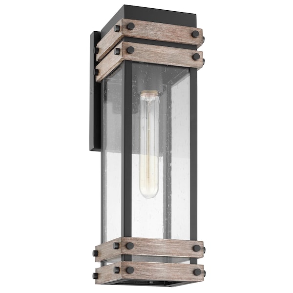 Homestead 1-Lgt Medium Wall Lantern - Matte Black & Wood / Clear Seed