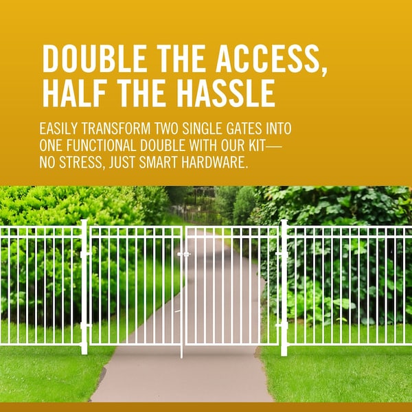 Upgrade your entrance with the Double Iron Gate Conversion Kit, made from tough, galvanized steel for lasting strength and durability. This kit easily combines two Nuvo Iron single gates into one sleek, unified double gate, blending style and function.Designed for quick, hassle-free installation, its perfect for both contractors and DIYers. With its durable build this kit will seamlessly blend into your gates while standing up to the elements.Whether you're adding a grand entrance to your home or creating easier access for larger vehicles or garden equipment, its the perfect way to combine style and convenience without the hassle.