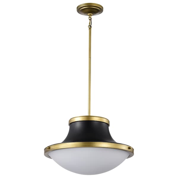 Lafayette 1-Light Pendant 18 in. Matte Black/Natural Brass White Opal Glass