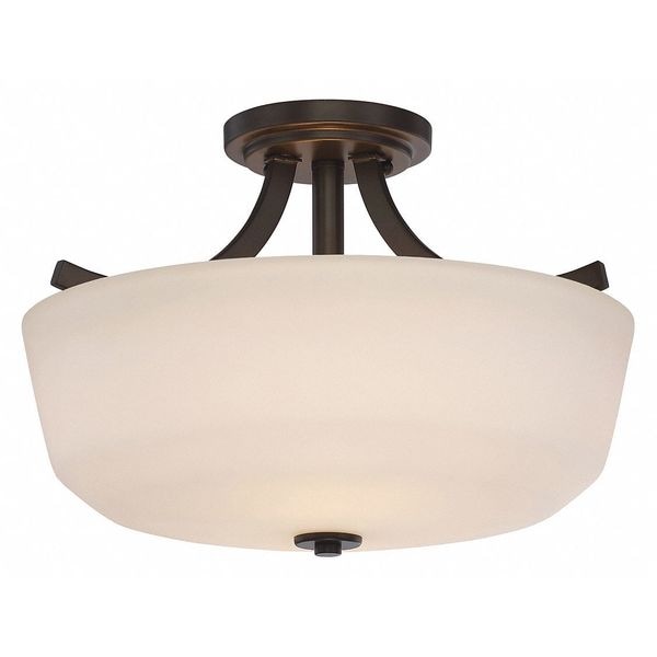 Semi Flush Fixture,2L,White,Glass,Bronze