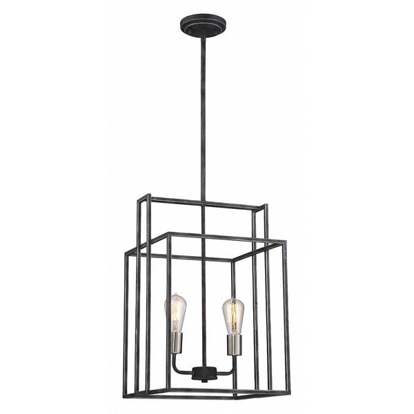 Lake 2 Light 14 in. Square Pendant Iron Black Brushed Nickel
