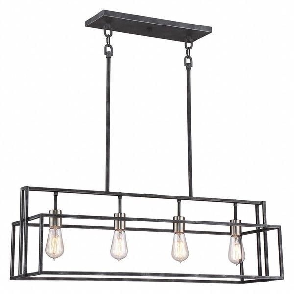 Lake 4 Light Island Pendant Iron Black Brushed Nickel Accent