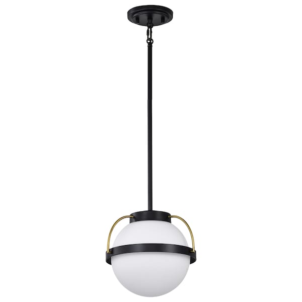 Lakeshore 1-Light Small Pendant Matte Black & Natural Brass White Opal Glass