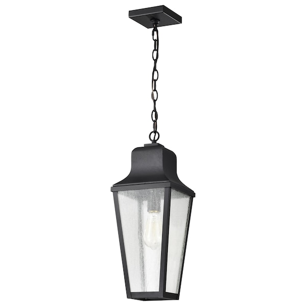 Lawrence - 1 Light Hanging Lantern - Matte Black with Clear Seeded Glass
