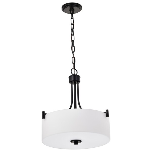 - Finished in Matte Black with White Opal Glass