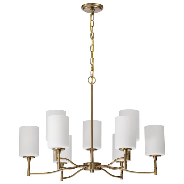 Liam, 9 Light Chandelier, Burnished Brass, White Opal Glass