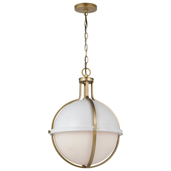 The striking Lincoln 60-7665 large pendant was inspired by an armillary sphere, consisting of a framework of elegant rings. Broad, circular bands surround the orb, and knob details in a brass hue enhance the opal glass and matte white finish for a prominent, stylish appearance. The combination of color tones offers an almost ethereal quality, delivering an elegant design to any room in your home.