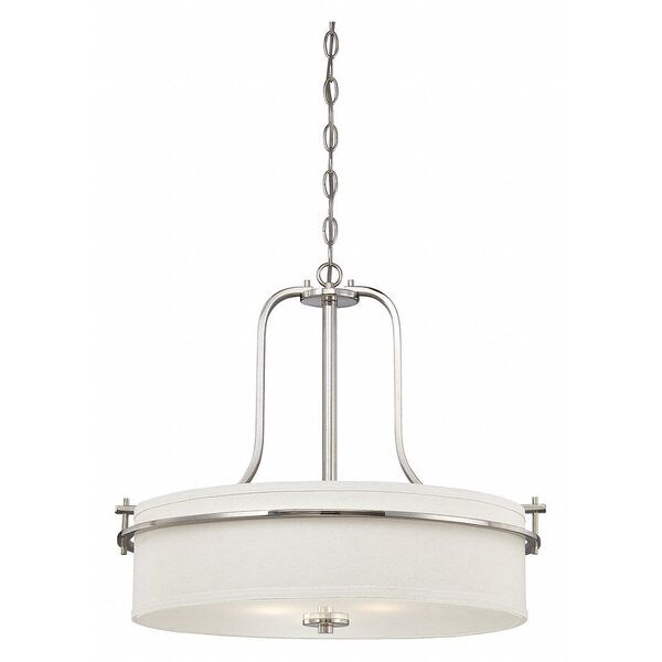 Loren 3 Light Pendant White Linen Shade Polished Nickel (Discontinued)
