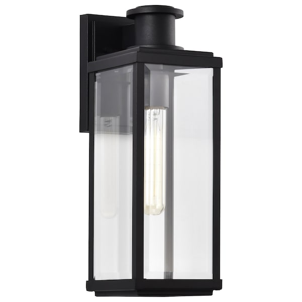 Luca, Medium Outdoor Lantern, Sand Black Finish, Clear Beveled Glass