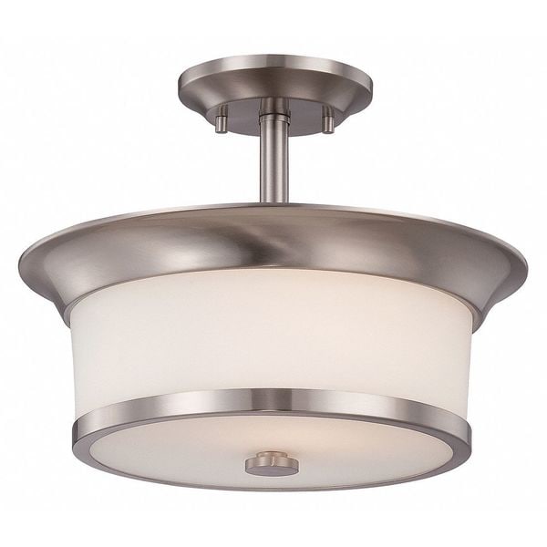 SemiFlush Fixture,2L,Wht,Glass,Brush Nkl