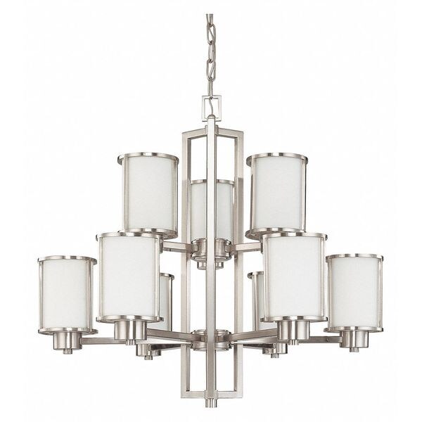 Odeon 6 + 3 Light Chandelier Satin White Glass Brushed Nicke (Discontinued)
