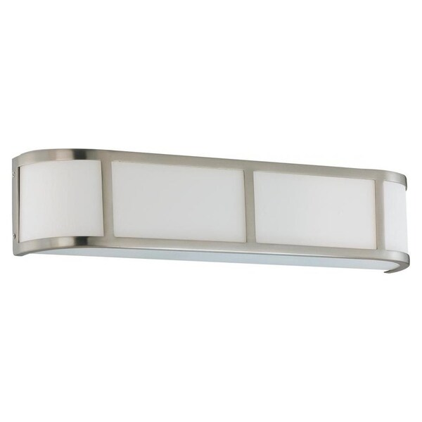 This Three Light Vanity has a Nickel Finish and is part of the Odeon ES Collection. It is Energy Star Compliant.