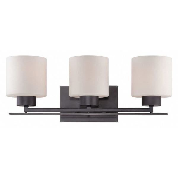 Parallel 3 Light Vanity Fixture Etched Opal Glass Aged Bronz