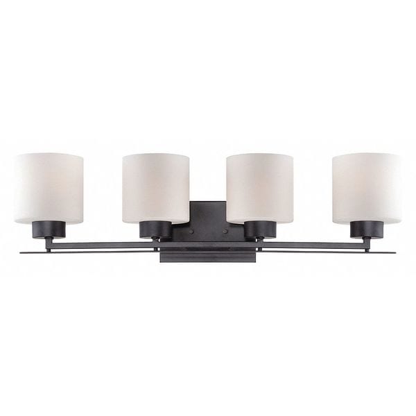 Parallel 4 Light Vanity Fixture Etched Opal Glass Aged Bronz