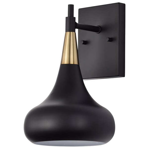 The curved, teardrop-shaped silhouette of the Phoenix 60-7507 wall sconce brings subtle style to new heights. Spruce up an entryway with a pair of these flanking a door, or bring light to a long, wide hallway. The matte black finish on the shaded exterior is accented with a burnished brass collar, contoured for an almost seamless transition. The white interior provides maximum light reflection.