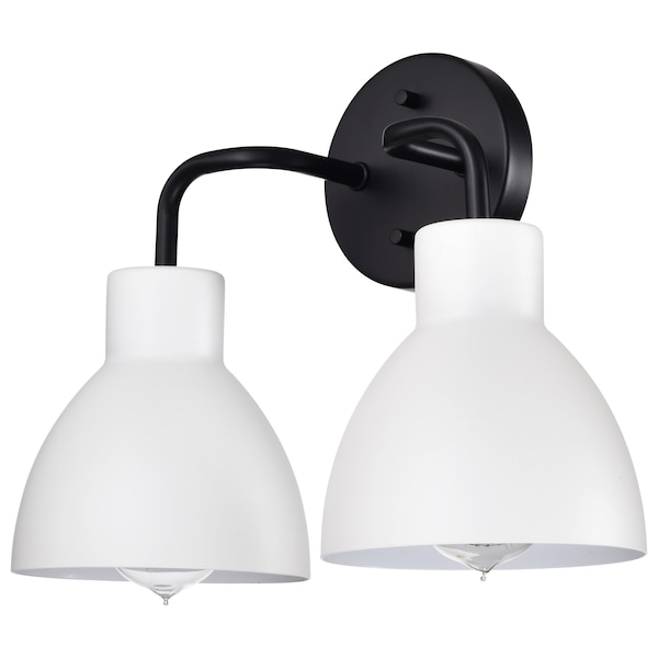Sloan 2-Light Vanity - Matte Black Finish with White Shade