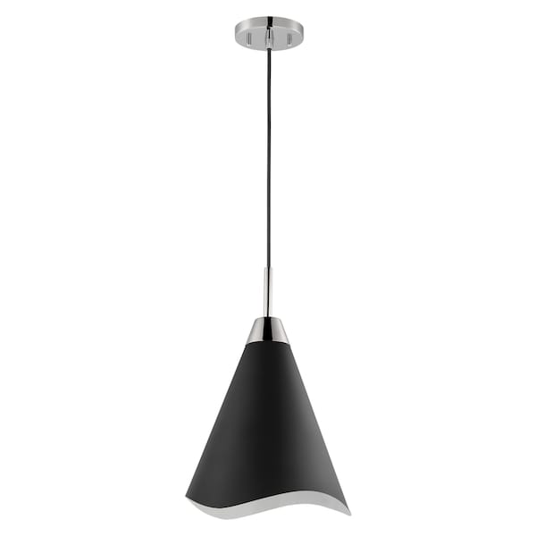 Tango 1-Light Medium Pendant - Matte Black with Polished Nickel