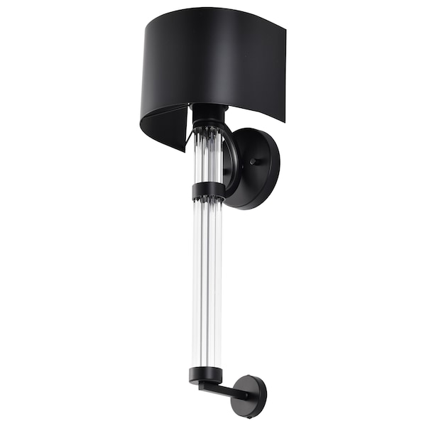 The Teagon 60-7756 wall sconce is a modern-lighting fixture that adds a touch of superior style to any room. Featuring a matte black finish on the base and matching metal shade, the sleek and contemporary look is accentuated with a clear glass column encompassing the length of the fixture. Providing focused and directional-light that is perfect for reading or creating a cozy atmosphere.