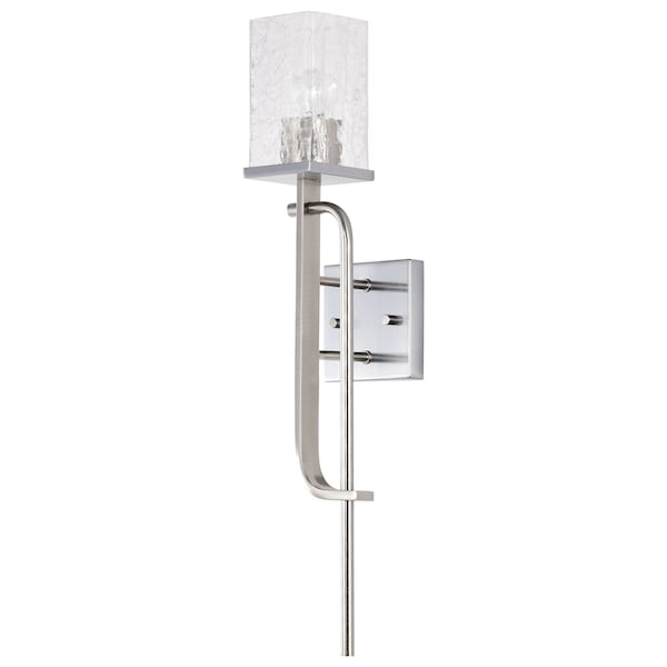 Sophisticated, with clean lines, the Terrace 60-7747 wall sconce is the ideal style for today's home dcor. The extended dual-length of the fixture body is accentuated with the polished nickel finish and the clear crackle glass adds sparkling illumination to the-light. This beautiful fixture is the perfect addition to a powder room or bathroom, bring your-lighting up-to-date with the Terrace wall sconce.