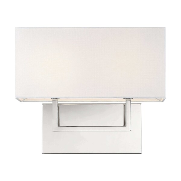 Satco's 60-6718 Tribeca wall sconce features slender and squared double arms that support a hard cornered rectangular white linen shade, sculpted in design and emphasized by the rectangular back plate finished in polished nickel. Precision and grace in the new modern classic luminaire.