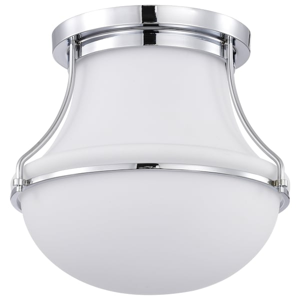 Evoke a sense of tranquility with the Valdora 60-7871 medium flush mount, which pays homage to classic, luminous illumination. A schoolhouse-inspired shade floats in a chic finish of polished nickel, perfectly complimenting the fixture base and white hue of the glass. Transform the rooms in your home with harmonious fixtures, paying homage to traditional style but designed for today's style.