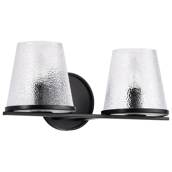 Valentine, 2 Light Vanity, Black Finish, Hammered Glass