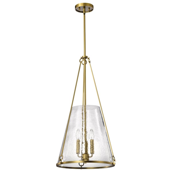Valentine, Large Pendant, Vintage Brass Finish, Hammered Glass