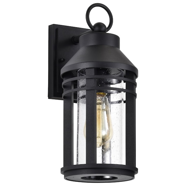 Wilton - 1 Light Medium Wall Lantern - Matte Black with Clear Seeded Glass