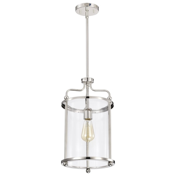 Yorktown 1-Light Pendant - Polished Nickel Finish - Clear Glass