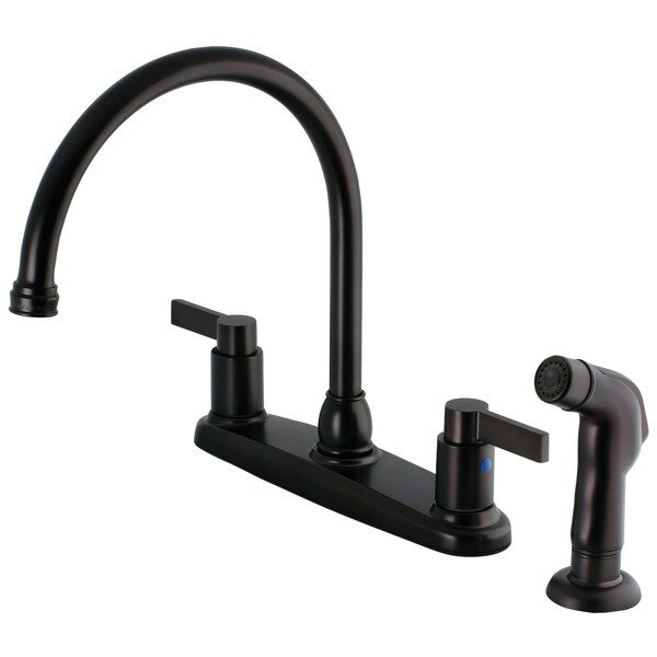 The chic fashion of this faucet is distinguished by its expressive artistry and flat, ergonomic levers. Easily adaptable to any style, centerset faucets are admired for their single unit and ease of installation. The oil rubbed bronze finish will also provide a long lasting and warm touch to your kitchen ensemble. Utilize the included matching finish side-sprayer for convenience in cleaning hard-to-reach areas.