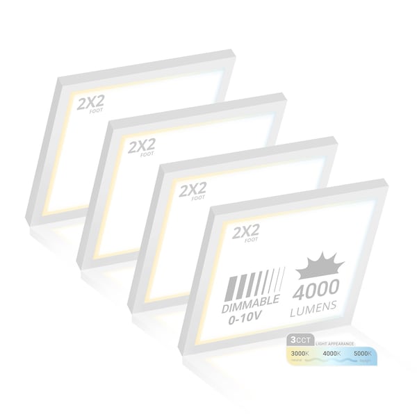 2x2 LED Square Flat Surface Mount Panel Light, Dimmable, 2700K-5000K, 1500LM, 120-277V, 4PK