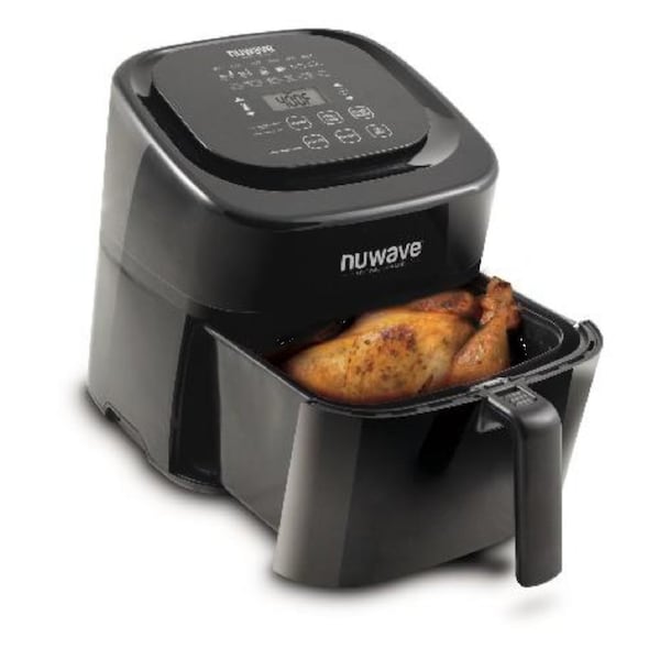 The NuWave 6 Qt. Digital Air Fryer uses hot air in combination with high-speed air circulation to perfectly cook your favorite fried foods. Now you can bake roast and grill a wide variety of foods using little to no oil. NuWave's inventive Digital Air Fryer includes a removable drawer and food basket that have durable nonstick coating. Plus the drawer and food basket are dishwasher safe which simplifies cleanup.
