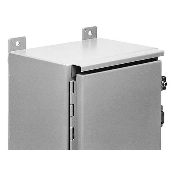 Drip Shield Kit, Material Steel, Finish Powder Coated, For Use With Single-Door Wall-Mount Enclosures, Sub-Category Mounting Accessories, Application Protects Enclosure Door from Dripping Water and Settling Dust, Width 36 in, Includes Sealing Washer, Stainless Steel Door Clamping Assemblies, Stainless Steel Hinge Pin, Stainless Steel Screws, Tube of Sealing Compound, Gasket Sealing Compound, Gauge 14