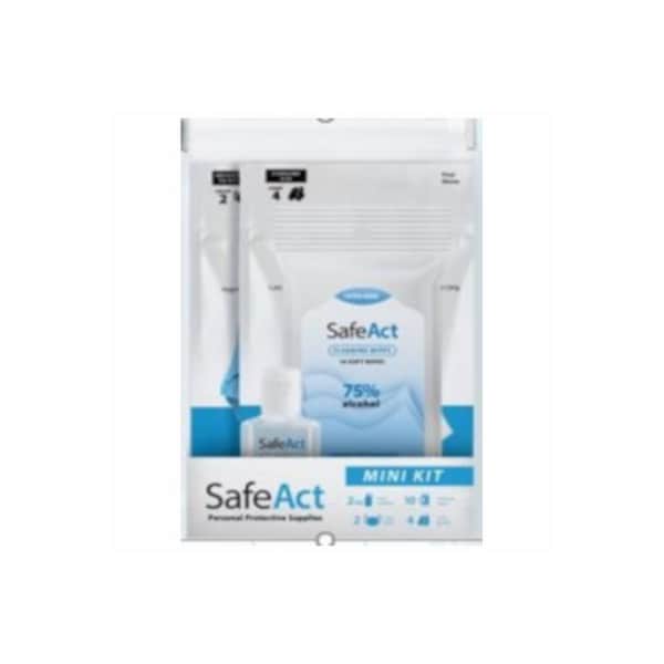 Safe Act Personal Protection Mini Kit. Contains: 2 3ply masks 4 vinyl gloves 10 cleaning wipes and 1 2 oz. hand sanitizer to keep you and your family safe. One time use for multiple purposes. Items in this kit play an essential in our daily lives whether at home during school in the office hotels the grocery store theater and more.