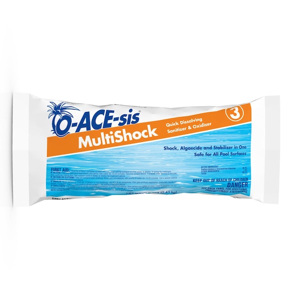 MultiShock is a highly effective buffered shock and oxidizer that is easy and convenient to use in the routine super chlorination of swimming pools. This product also kills harmful bacteria, aids in algae control and helps keep the pool clean and clear. This product also leaves beneficial chlorine residual in the water that continually destroys organic contaminants entering the pool. MultiShock allows bathers to enjoy the benefits of a healthy pool environment with the least amount of effort. When used as directed, this product removes organic waste, producing sparkling, clean swimming pool water.