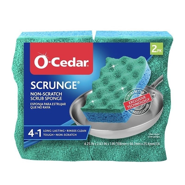 O-Cedar Medium-Duty Scrubber Sponge, 4-1/4 in L, 2.63 in W, Cellulose/Synthetic Fiber Backing, Blue/Green