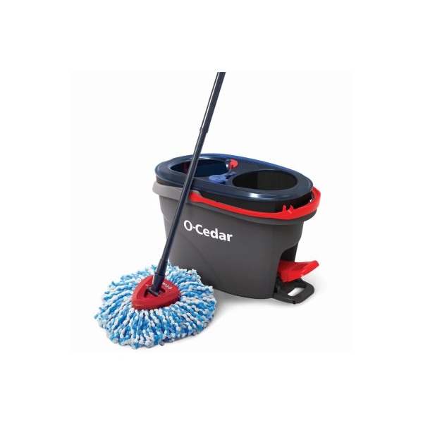 with break through bucket technology featuring separated clean and dirty tanks making it easy to continuously clean with clean water Foot activated wringer allows for hands free wringing and controlled water release Triangle shaped mop head for easy maneuverability and better corner cleaning Safe for all hard floor surfaces, including hardwood Machine washable mop head refill lasts up to 3 months System includes Rinse Clean bucket, telescopic handle that adjusts to 51 inches and microfiber mop head Mop head refill TV100298