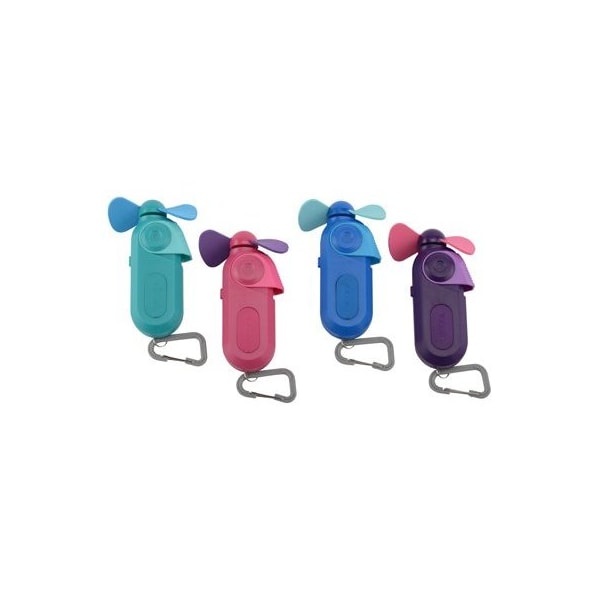 Carabiner Water Misting Fan, Assorted Colors, Fine Mist Sprayer, Carabiner Clip, 1 Speed Motor, Soft Foam Safety Blades, Provides A Comfortable Yet Powerful Breeze, Uses 1 AA Battery, Not Included