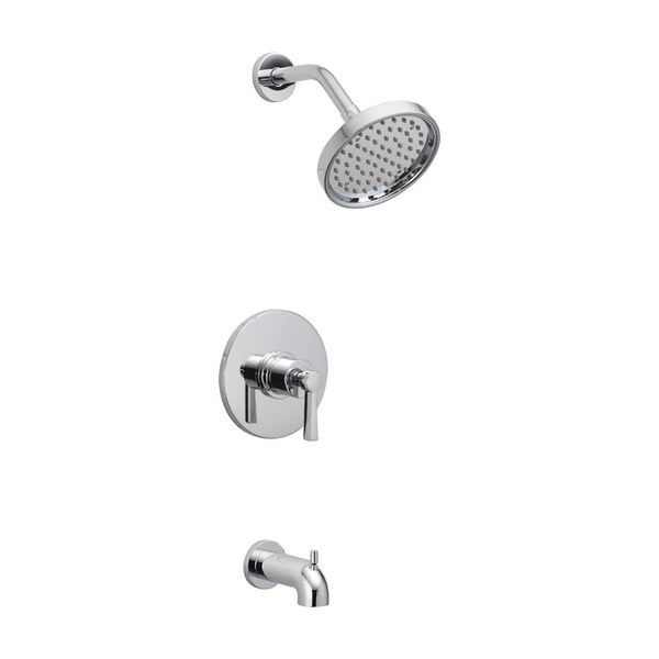 The Oak Brook single-handle tub and shower faucet with hand shower in Chrome decorative lever that add a touch of elegance to any bathroom. The faucet's single-handle design makes it easy to use. The faucet has an adjustable temperature-limit stop which provides a safe and comfortable shower. The faucet's versatile hand shower makes cleaning easy.