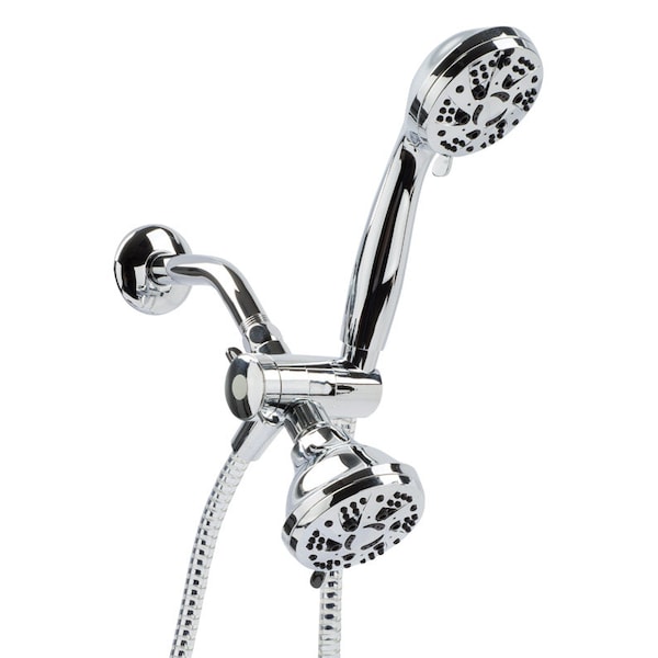 This 5 function handheld shower and shower head kit includes a 60" hose, and mount/3 way diverter which allows you to easily switch between using either or both heads at once. It features a stylish plated face and rub clean nozzles allow for easy cleaning