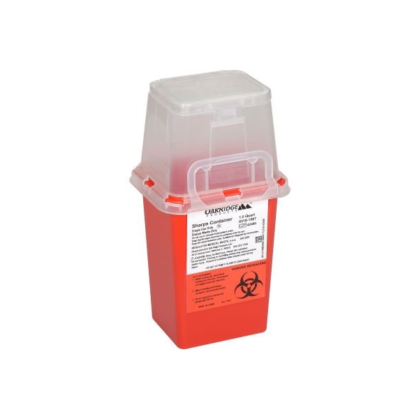 Oakridge Products 1.5 Quart Sharps Container Tall Lid, Red