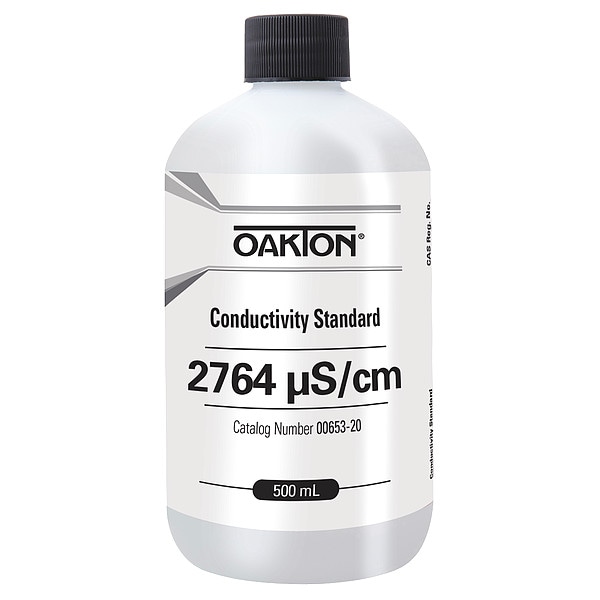 Conductivity Calibration Solution, Concentration 2,764microsiemens, CAS Number 71-23-8, 7447-40-7, 7732-18-5, Chemical Grade ACS, Chemical Family Type Solution, Shelf Life 12 mo, Standards ISO 17025, Special Information 2764 uS/cm