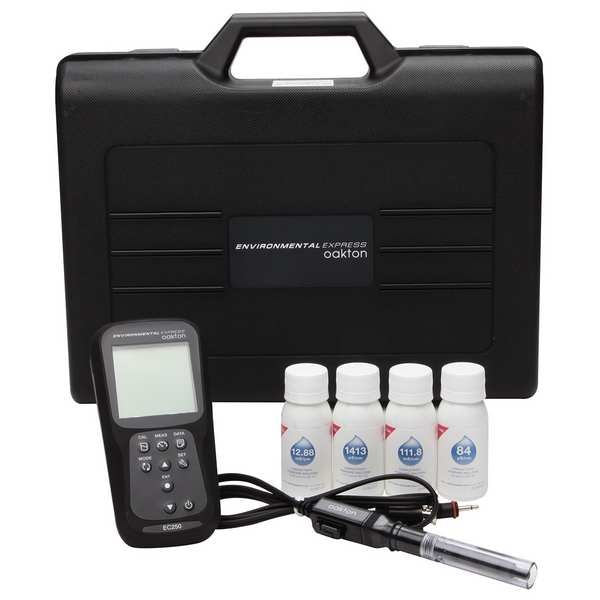 Handheld Multiparameter Meter Kit, Electric Conductivity Range 0 to 200 mS/cm, TDS Range 0 to 100 ppt, Waterproof IP67, Automatic Temperature Compensation Yes, Displayed Temperature Range -22 Degrees to 266 Degrees F, -30 Degrees to 130 Degrees C, Salinity Range 0 to 100 ppt, Operating Temp. Range (F) -22 Degrees to 266 Degrees F, Operating Temp. Range (C) -30 Degrees to 130 Degrees C, Resistivity Range 0 to 20 megaohms, Display Backlit LCD, Auto Power Off Auto Power Off