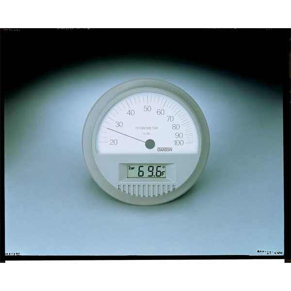 Digital/Analog Hygrometer, 20 Percent to 100 Percent, Primary Scale Temperature, Includes NIST-Traceable Certificate No, 5 in dia, Temperature Scale Celsius, Fahrenheit
