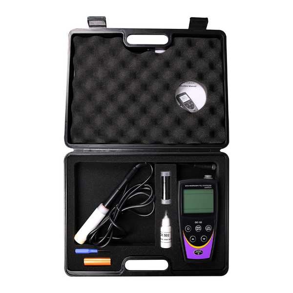(3) AA Batteries, Carrying Case, Cathode Polishing Paper, Electrolyte Solution, Membrane Caps, Polarographic DO Electrode with Built-in Temperature Sensor