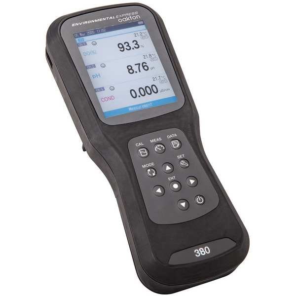 Handheld Multiparameter Meter, pH Range -2.00 to 20.00, Electric Conductivity Range 0 to 200 mS, TDS Range 0.01 to 200,000 mg/L, ORP Range -1000 to +1000 mV, Dissolved Oxygen Range 0 to 20 mg/L, 0 to 200 Percent, Waterproof IP67, Automatic Temperature Compensation Yes, Displayed Temperature Range -22 to 266 Degrees F, -30 Degrees to 130 Degrees C, Salinity Range 0 to 80 ppt, Operating Temp. Range (F) -22 Degrees to 266 Degrees F, Operating Temp. Range (C) -30 Degrees to 130 Degrees C