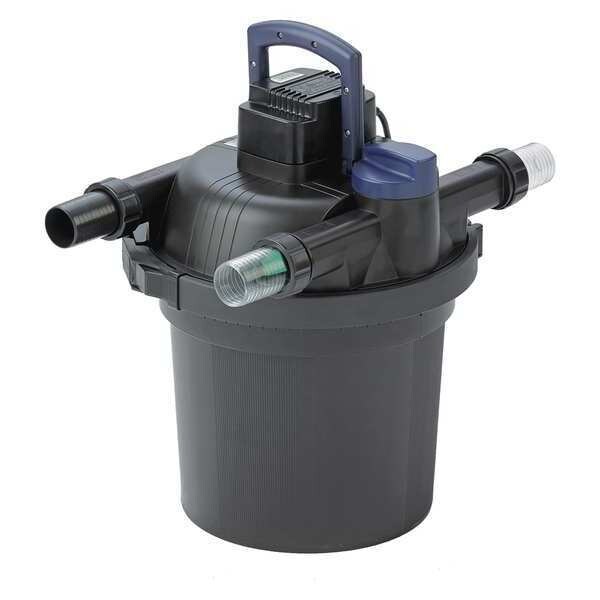 Filter Clarifier, Filter Type Mechanical and Coarse Biological Filters, UVC Ultraviolet Clarification, For Pond Capacity 3,000 gal, Compatible Intake Pipe Size 1 1/2 in, 2 in, Compatible Discharge Pipe Size 1 1/2 in, 2 in, Intake Type Barbed, Maximum Flow Rate 33.3 gpm, Discharge Type Barbed, Cord Length 15 ft, Overall Height 20 in, Nameplate Voltage 120V AC, Features Biological and UVC Technology, Minimum Flow Rate 8.3 gpm